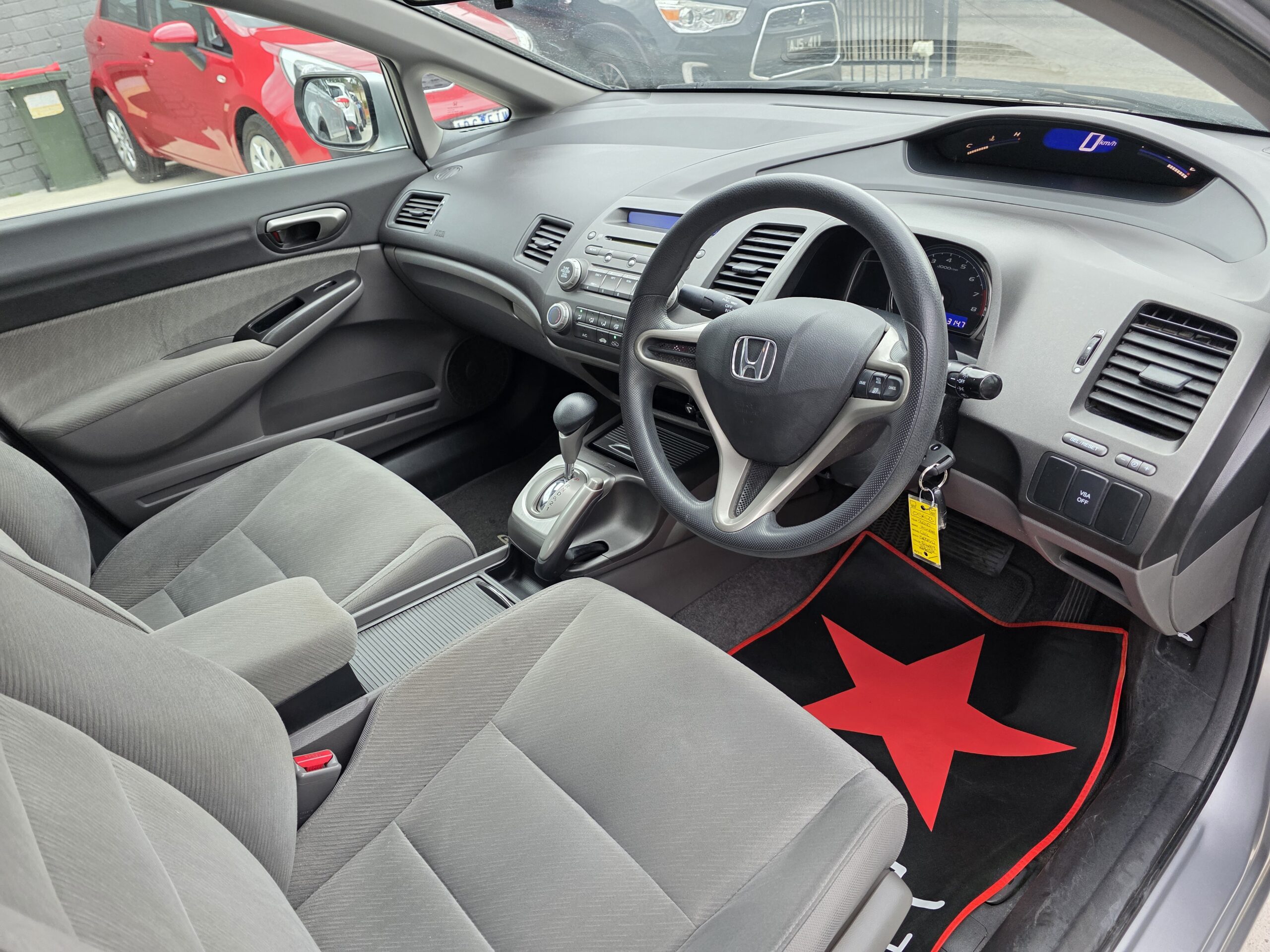 This Honda Civic VTi has front cup holders and a great air conditioner for those hot sunny days.