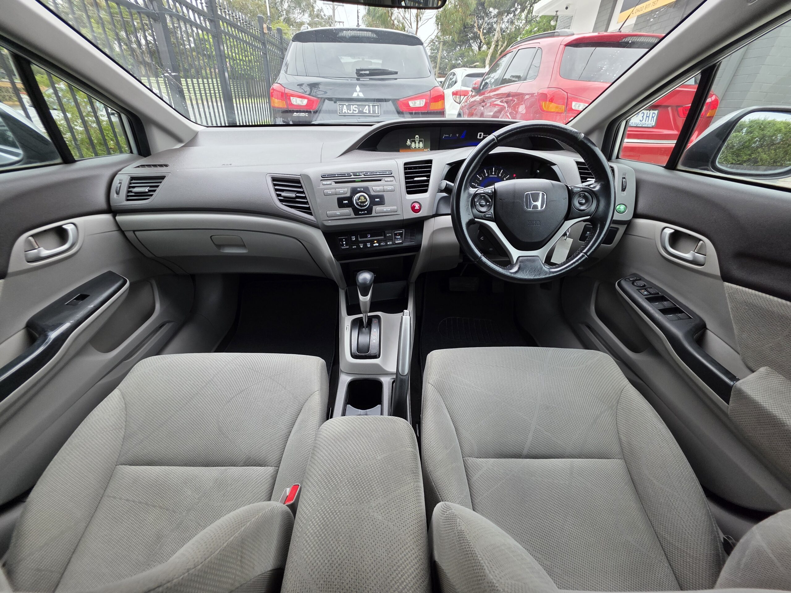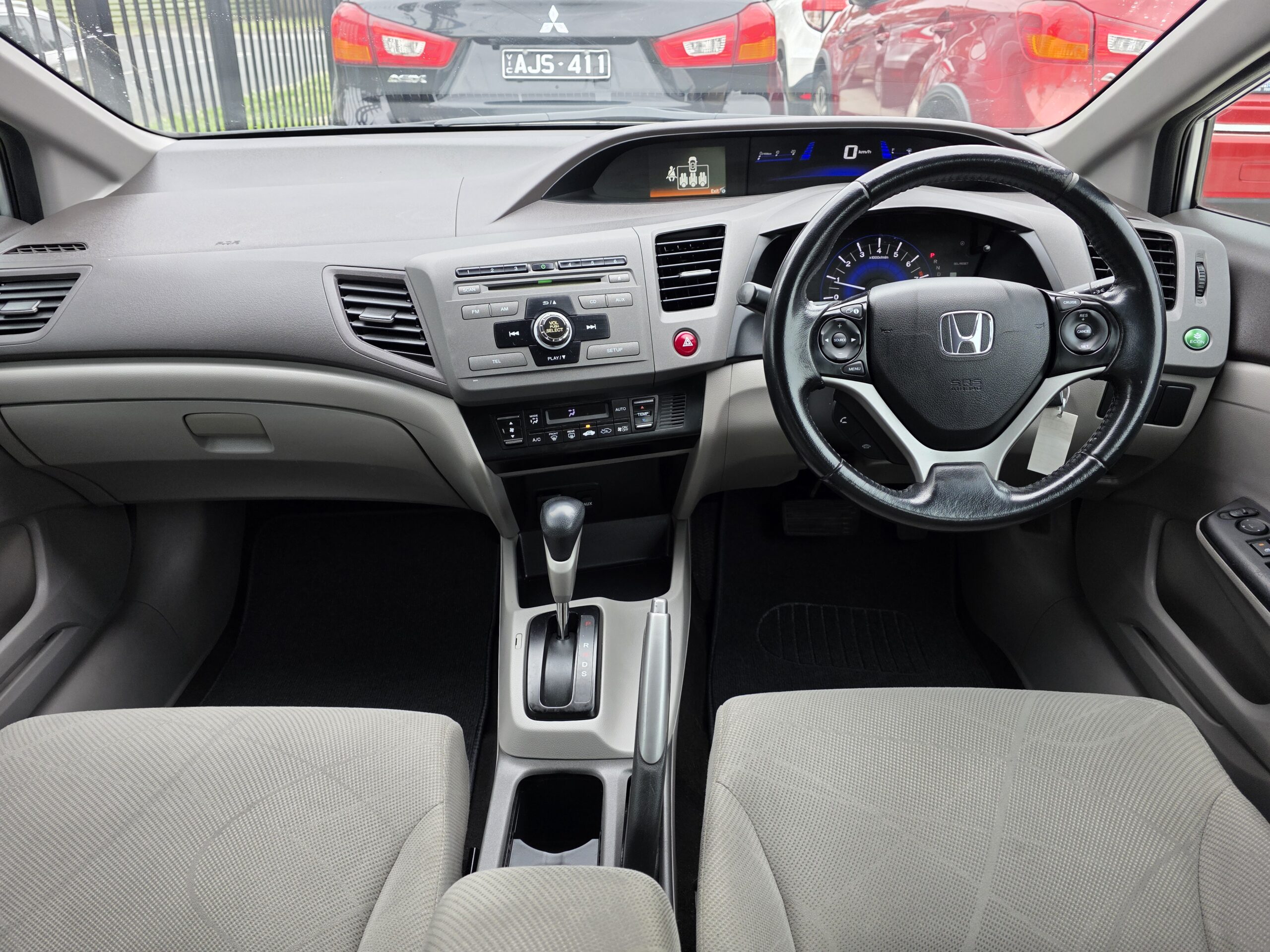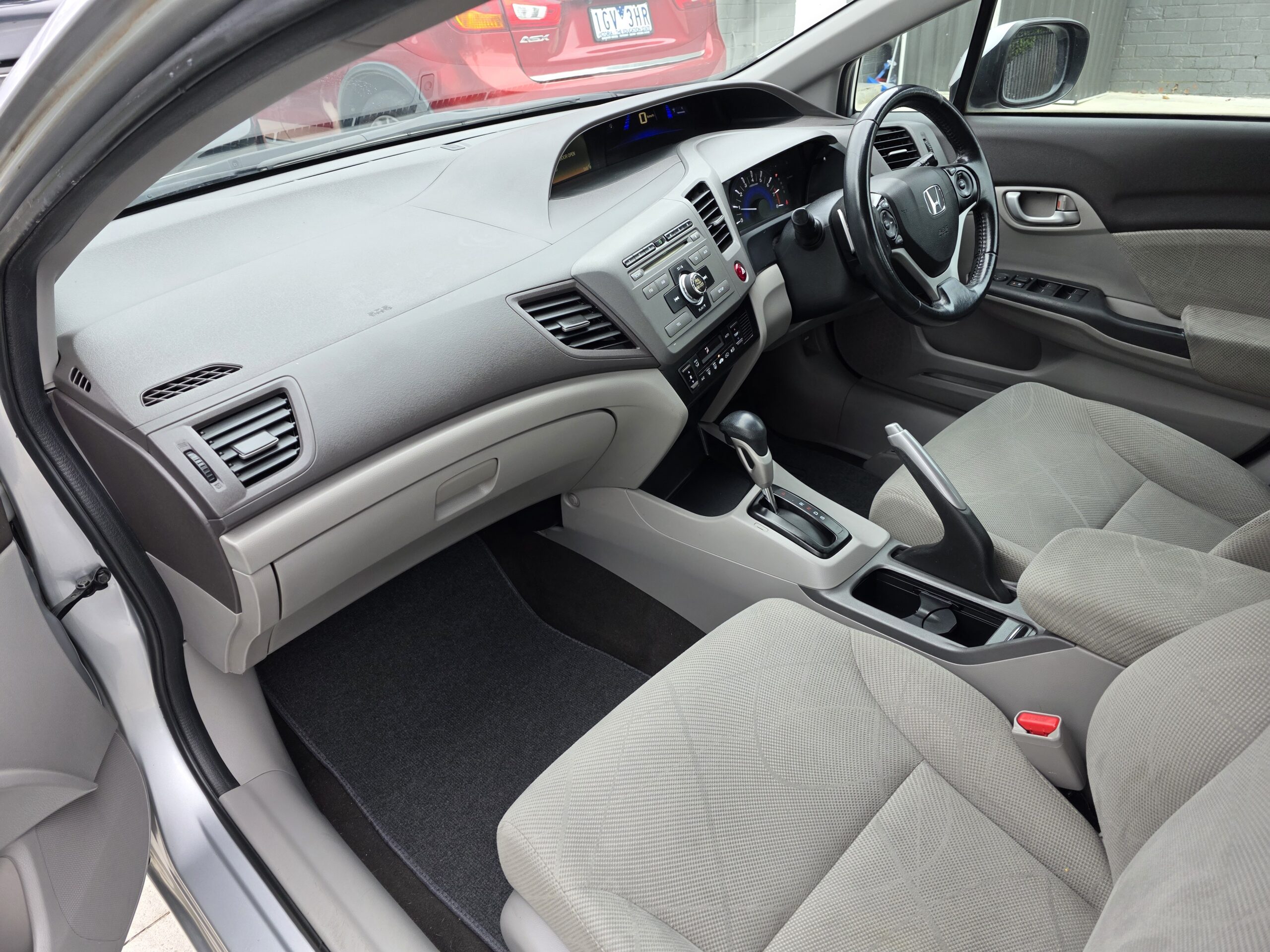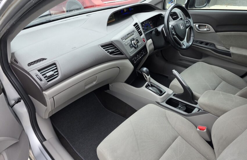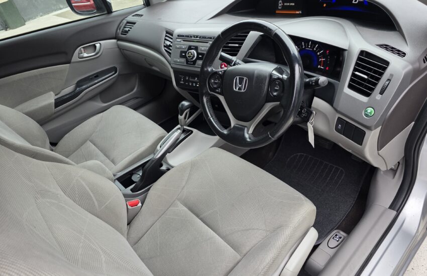 This car has leather seats. This Honda Civic 2012 VTi-L has USB audio input, LED tail lamps, rear spoiler, heated front seats, rear air conditioning and premium sound system. It has hill holder. It has leather steering wheel, sports pedals and remote central locking. Make phone calls safely and conveniently through the Bluetooth enabled audio system. It has electric power assisted steering. Answer calls listen to music using the multi-function steering wheel. Air conditioning with automatic temperature control.