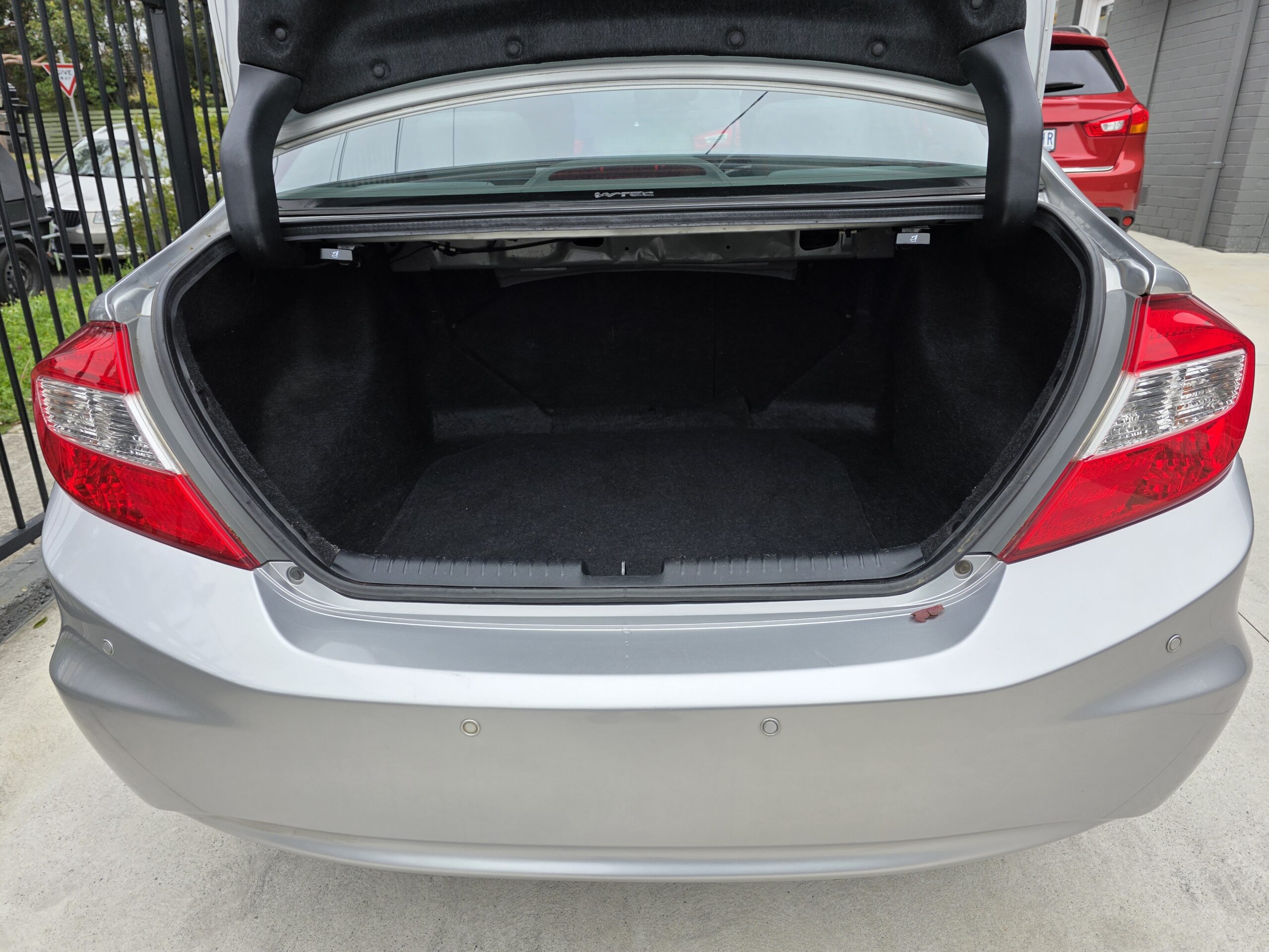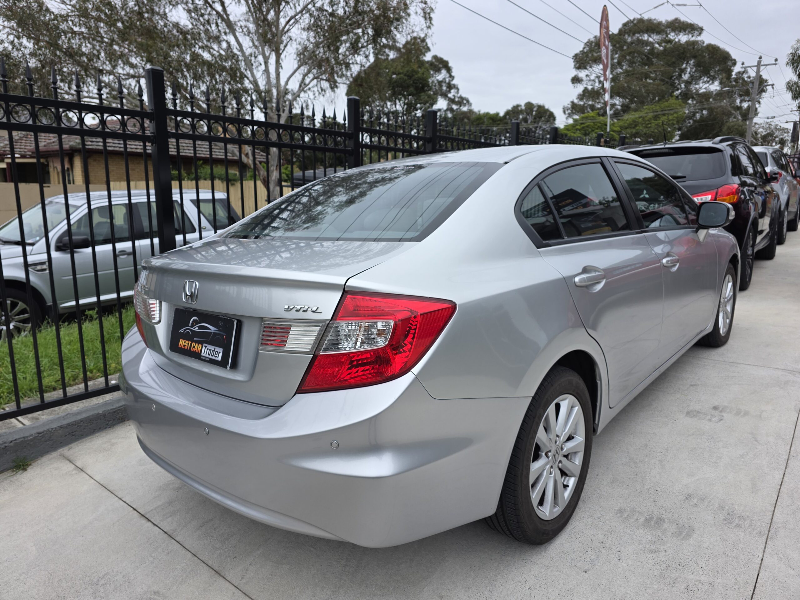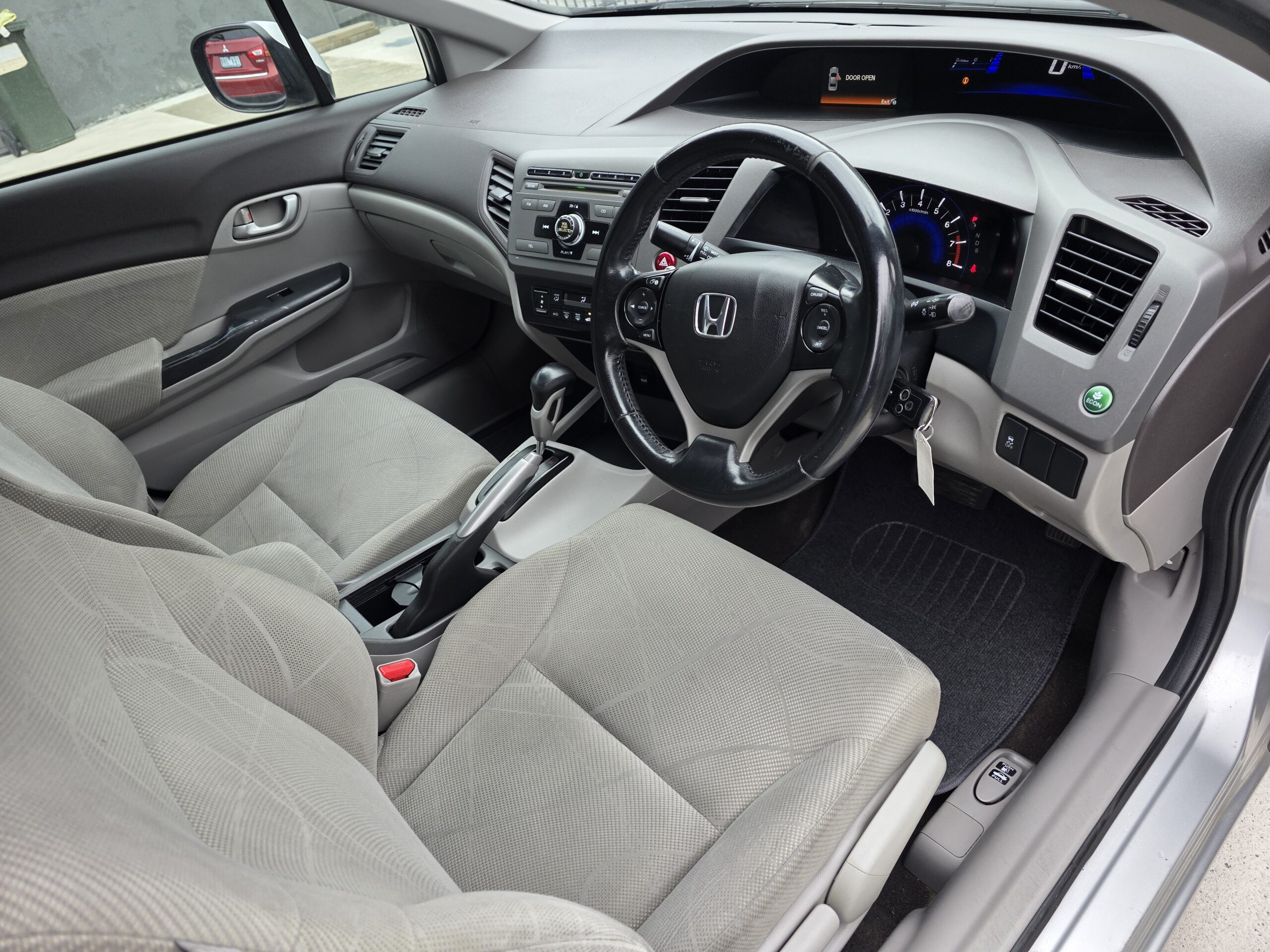 This car has leather seats. This Honda Civic 2012 VTi-L has USB audio input, LED tail lamps, rear spoiler, heated front seats, rear air conditioning and premium sound system. It has hill holder. It has leather steering wheel, sports pedals and remote central locking. Make phone calls safely and conveniently through the Bluetooth enabled audio system. It has electric power assisted steering. Answer calls listen to music using the multi-function steering wheel. Air conditioning with automatic temperature control.