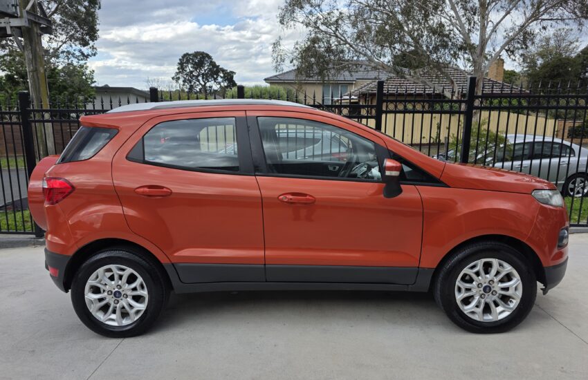 This car has side airbags. 7 airbags to give you added safety with an ANCAP safety rating of 5. The integrated Bluetooth system connects your enabled phone through the audio system. This car was built with sustainable motoring in mind. This Ford EcoSport 2013 has USB audio input, front fog lamps, keyless start, power door mirrors, cruise control and 16″ alloy wheels.