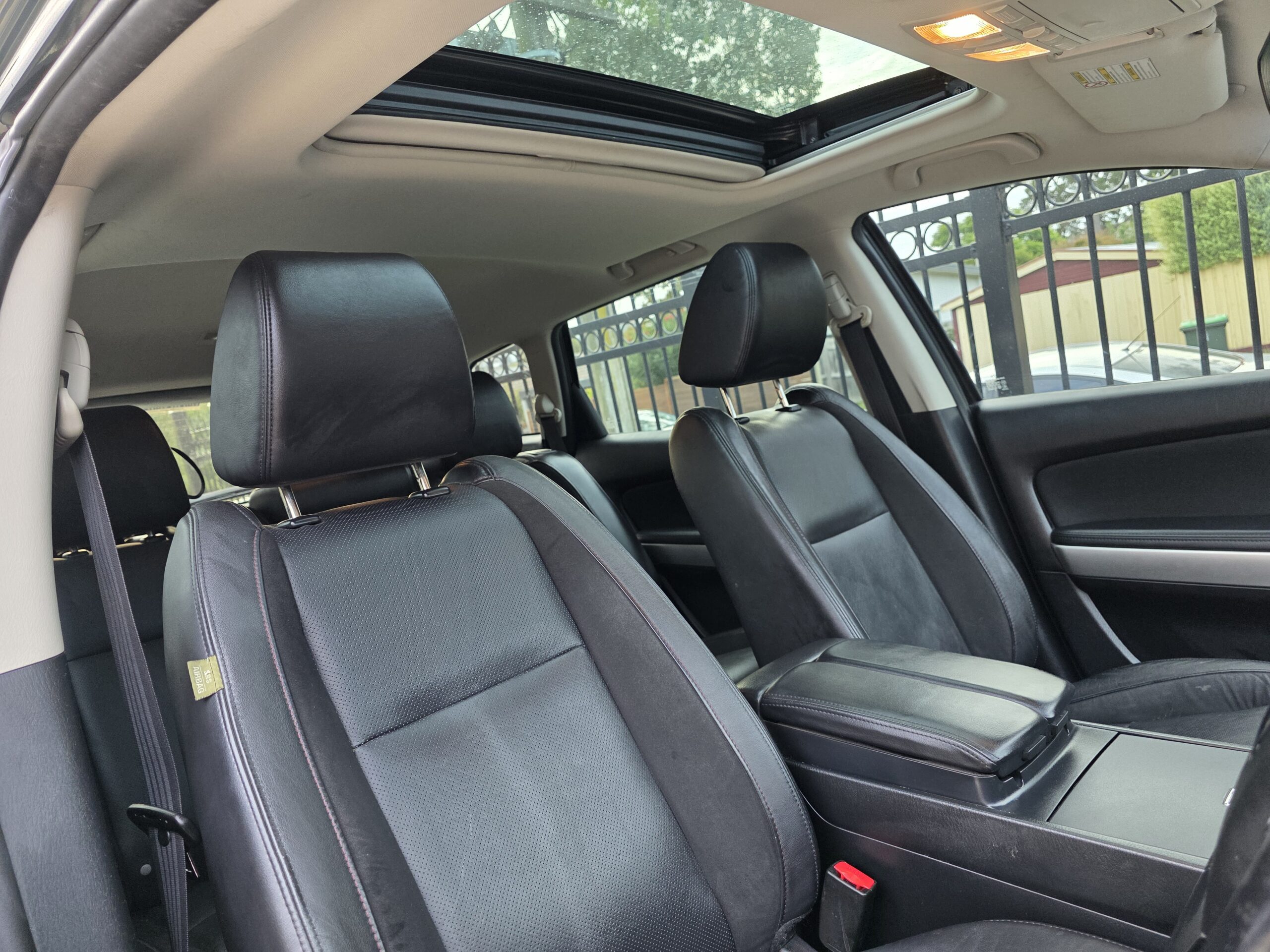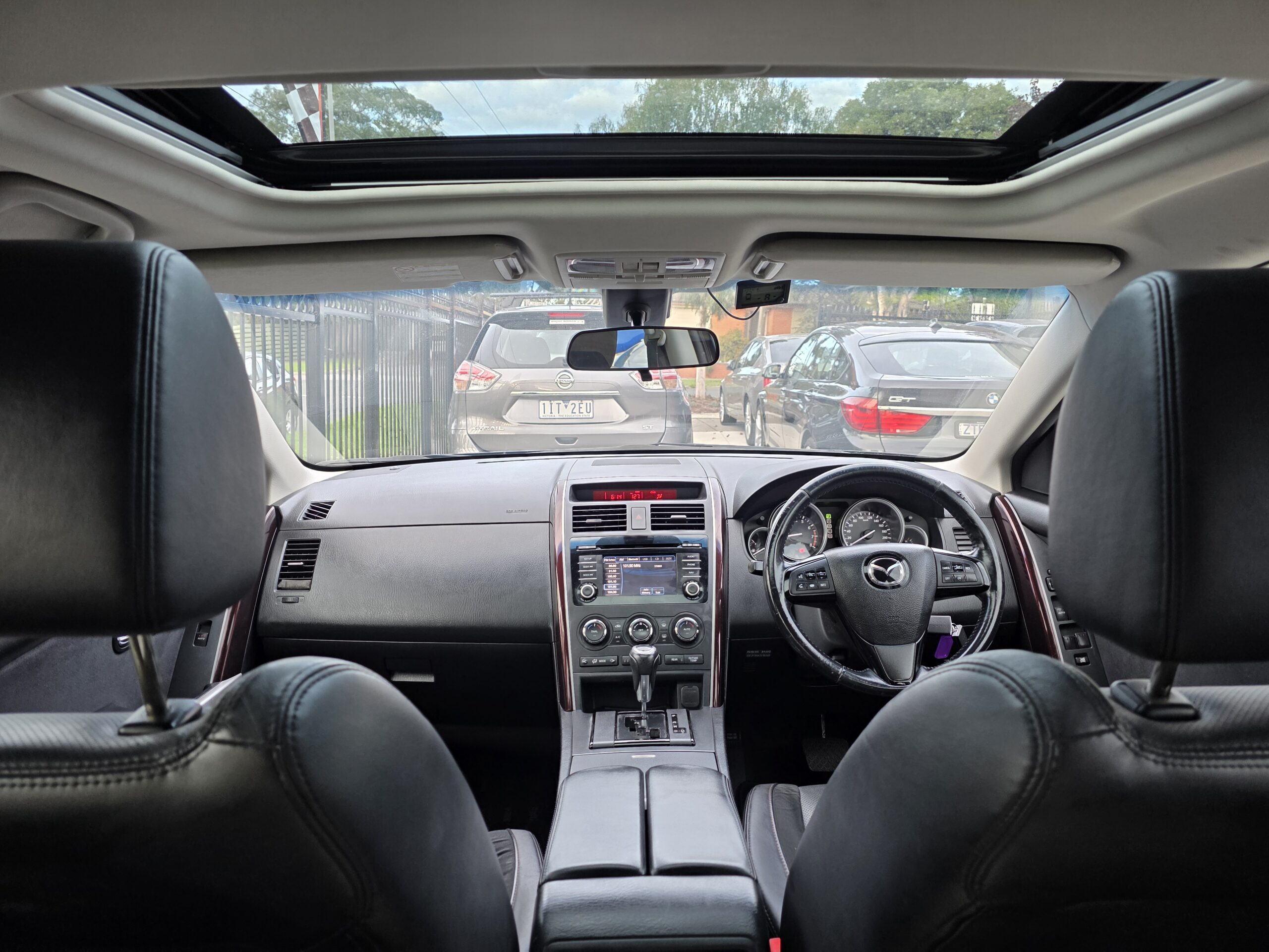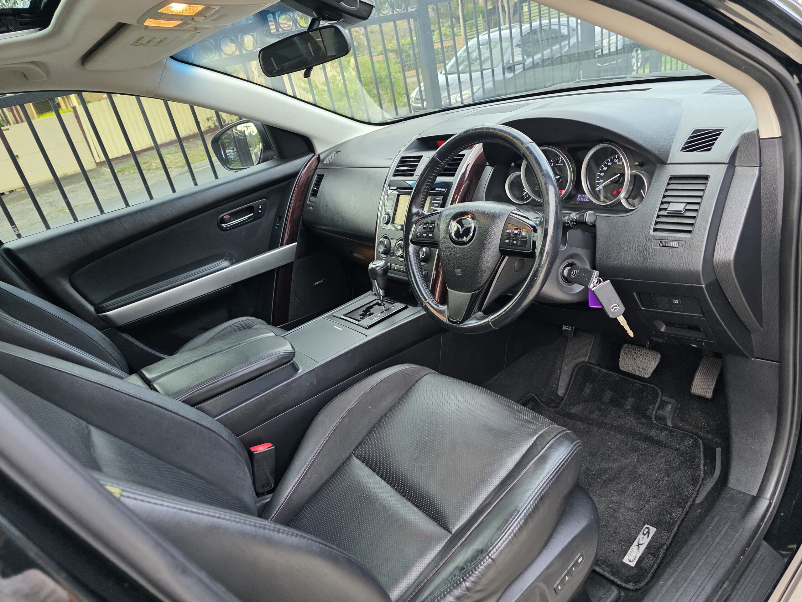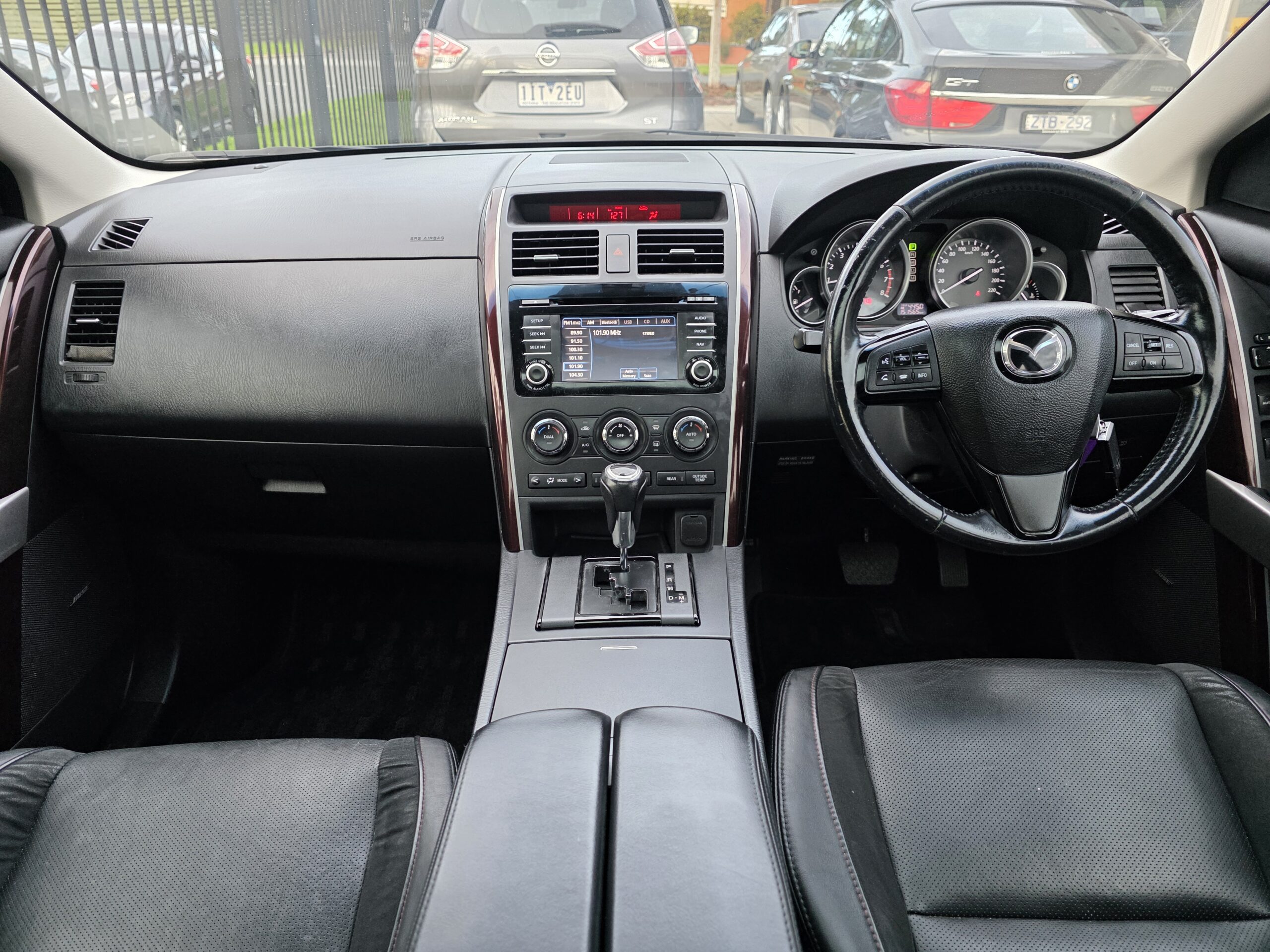 ✅This Mazda CX-9 has leather gear knob. It has leather seats. The integrated Bluetooth system connects your enabled phone through the audio system. It has multi zone climate control air conditioning.